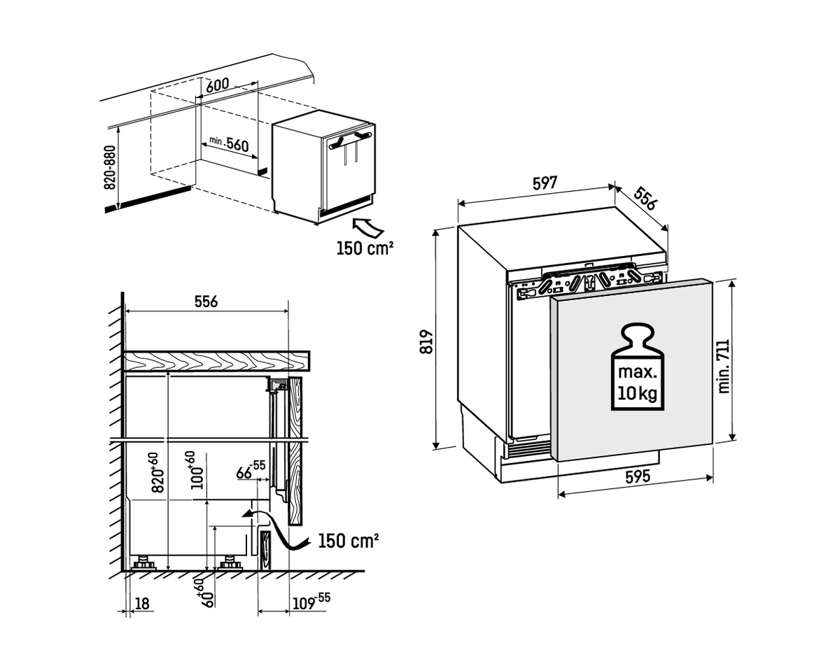 Unterbaufähiger Kühlschrank