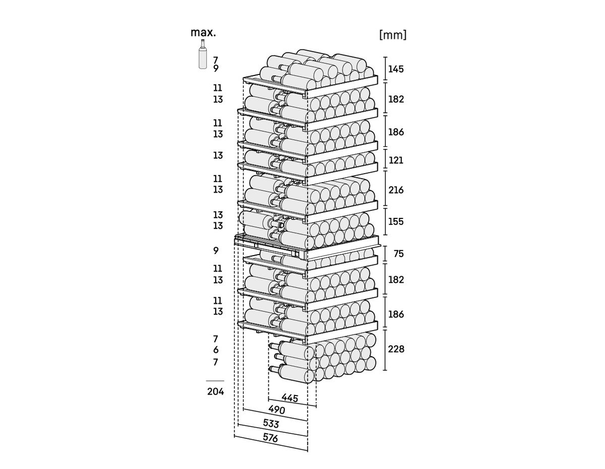 Maximale Anzahl Bordeauxflaschen 0,75 l:
