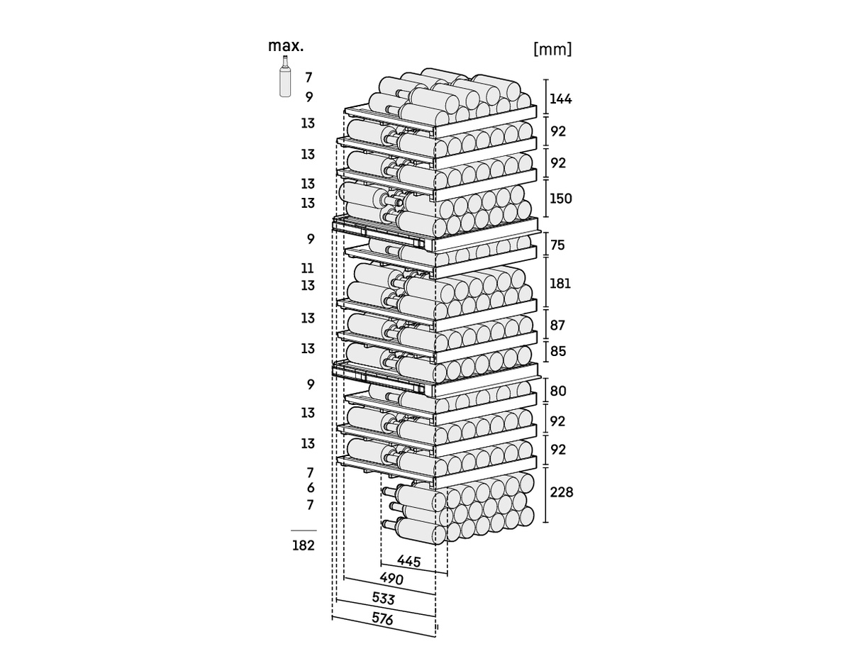 Maximale Anzahl Bordeauxflaschen 0,75 l: